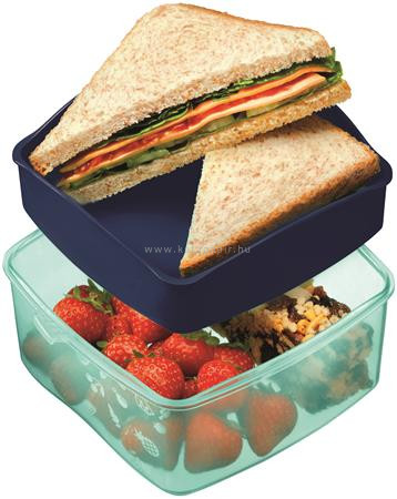 Kétszintes uzsonnás doboz a teljes ebéd tárolására kivehető felső tálca lekerekített sarkok szivárgásmentes,